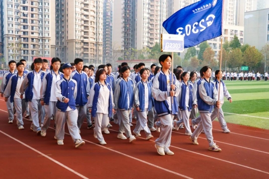 在激情澎湃的氛围中,校长汤正和宣布:文郡洋沙湖中学2023年第五届体育节暨田径运动会开幕!