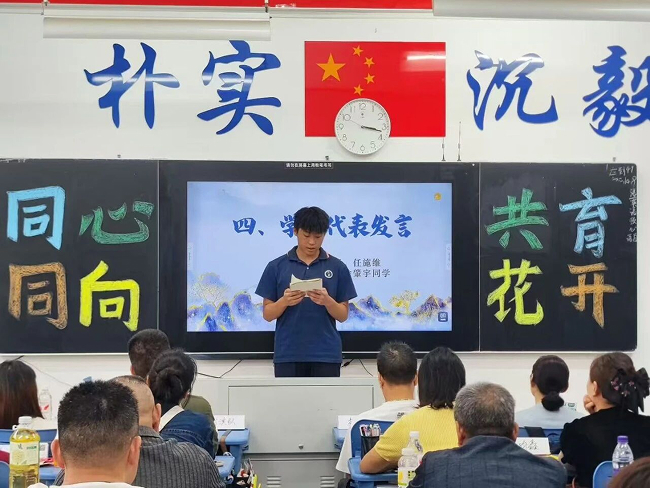 黄主任同时向家长们提出了中肯的建议,希望家长们能为孩子树立坚定的信心,共同营造一个宽松、和谐、支持的家庭氛围。他在发言中特别强调:“高考不仅是知识的较量,更是策略、心态和毅力的综合博弈。学校已做好万全准备,我们将以最专业的指导、最温暖的陪伴,与各位家长并肩作战。”