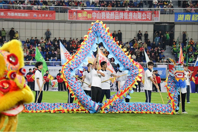 少年当有为,未来更可期表演尾声,金龙盘旋成圈,南狮蹲坐中央,共同摆出“圆满”的造型。锣鼓声渐渐平息,但“湘超”赛事的激情才刚刚启幕,文郡洋沙湖中学龙狮队的成长故事也远未落幕。当少年们擎着龙具、扛着狮头退场时,阳光洒在他们朝气蓬勃的脸上,那眼中闪烁的不仅是对此次表演的自豪,更有对未来的无限憧憬。这场融合了非遗传承与体育精神的表演,不仅为赛事增添了独特的文化厚度,更让在场每一位观众坚信:这群心怀热爱、敢拼敢闯的少年,定能在未来书写更多关于舞龙舞狮、关于青春的精彩篇章,让传统之美在新时代持续闪耀,让“少年有为” 的故事在更多赛场绽放光芒。