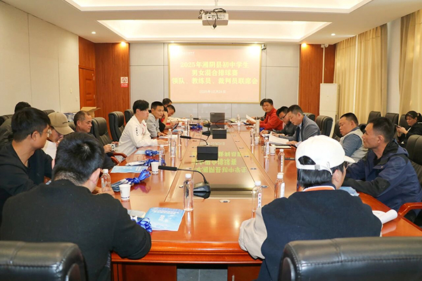 10月26日上午,湘阴县教育局基教股副股长汤艳明、各参赛学校的领队、教练员及全体裁判员莅临我校。校领导热情接待了来宾,并随后组织召开了赛事联席会。会议就赛事组织流程、竞赛规则执行与全程安全保障三大核心内容,展开了深入讨论与细致部署,逐一明确了各环节的责任分工,为后续排球赛事规范、有序地推进奠定了坚实基础。