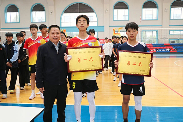 决赛的最后一声哨响划破体育馆,这场排球赛事顺利走完所有赛程,圆满落下帷幕。场馆内,竞技的热血尚未平息,温馨的颁奖环节已接续登场。湘阴县教育局基教股股长李刚泰为第一名“知源队”,第二名“岭北队”颁奖;基教股副股长汤艳明为第三名“南湖队”,第四名“新泉队”颁奖;基教股副股长胡杰为第五名“城南队”,第六名“左宗棠队”颁奖。师生们手捧这份凝聚着汗水的荣光,并肩而立。当他们的笑容在镜头前璀璨绽放,那其中闪烁的,是拼搏过后无憾的自豪,也为这场洋溢着青春朝气的体育盛会,定格了最完美的收官瞬间。