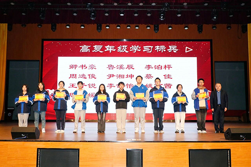 在校园表彰的庄重氛围中,我校黄建军主任与姜海洲主任分别为高三、高复年级的优秀学子隆重颁发 “进步之星”“学习标兵” 两大奖项,获奖同学们凭借不懈的坚持、科学的方法与精益求精的态度,在学业道路上稳步前行、突破自我,用实际行动诠释了青春奋斗的意义。他们的优秀不仅是个人努力的见证,更为全体同学树立了可感可学的榜样,愿这份拼搏精神持续传递,激励每一位洋沙湖学子以榜样为灯,笃行不怠,在逐梦路上勇毅争先,共创佳绩!