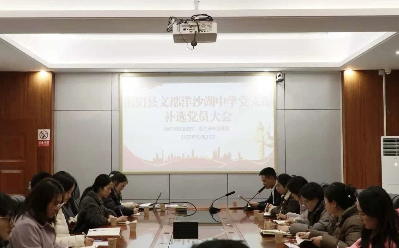 12月23日晚,文郡洋沙湖中学党支部召开党员大会,补选支部委员会委员。本次大会得到上级党组织的高度重视与亲切关怀,县教育局党组副书记、总督学张浩、县教育局党建办主任杨旭百忙之中亲临会场指导。会上,张浩书记寄语全体党员:立足新起点、肩负新使命、展现新作为。会议由学生发展中心陈浩主任主持,学校全体党员同志齐聚一堂,共同参与并见证这场关乎支部建设发展的重要会议。