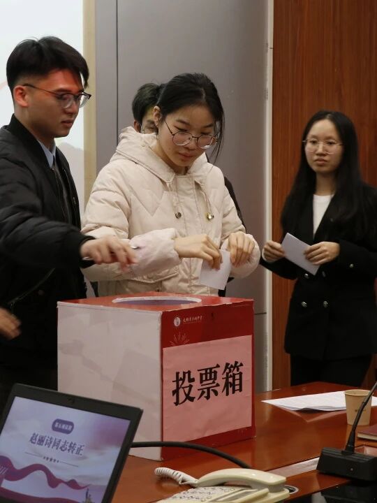 随后,新当选的党支部委员会召开第一次全体会议。会议严格依照选举流程,选举产生新一届党支部书记,并对各位委员的职责分工作出明确部署:谈万里同志当选党支部书记,刘彪同志担任纪检委员,焦佼姿同志负责宣传工作,谭泽骏同志履行保密委员职责。会议现场同时宣读喜讯,赵丽诗同志顺利转正,正式成为一名中共正式党员。