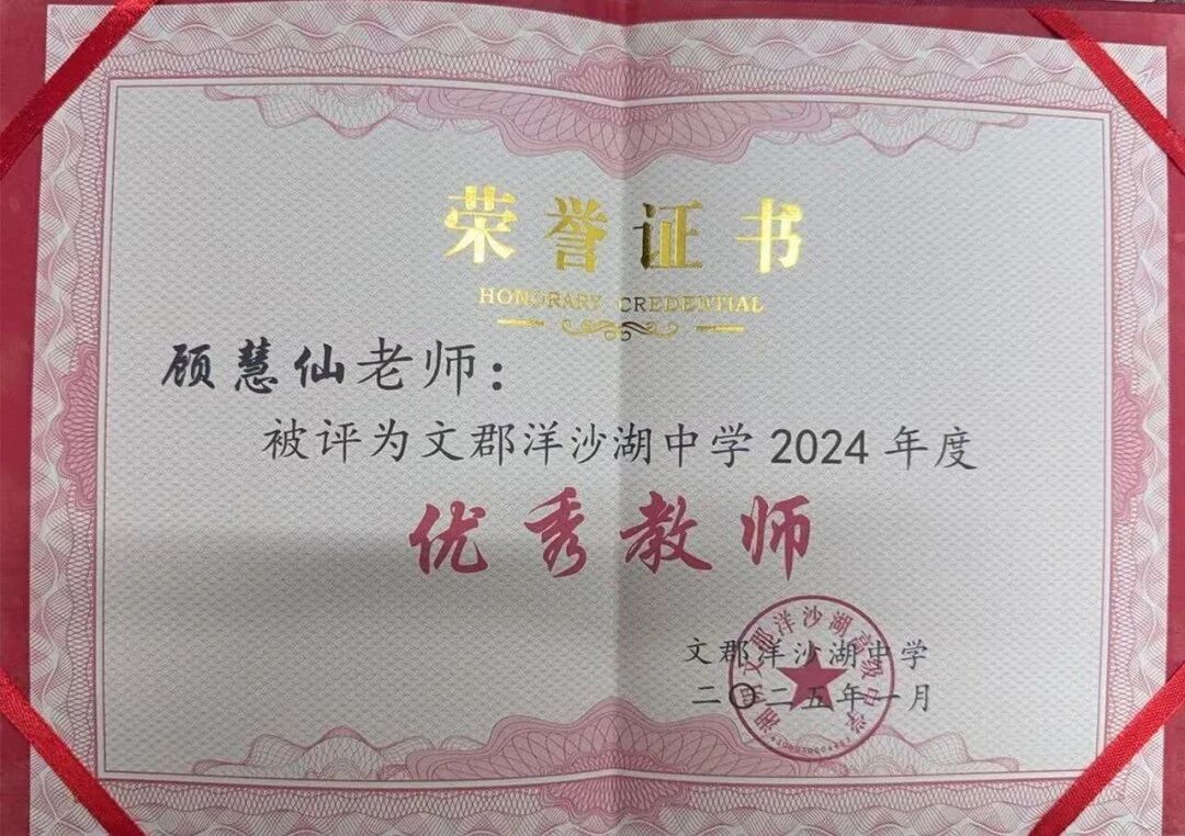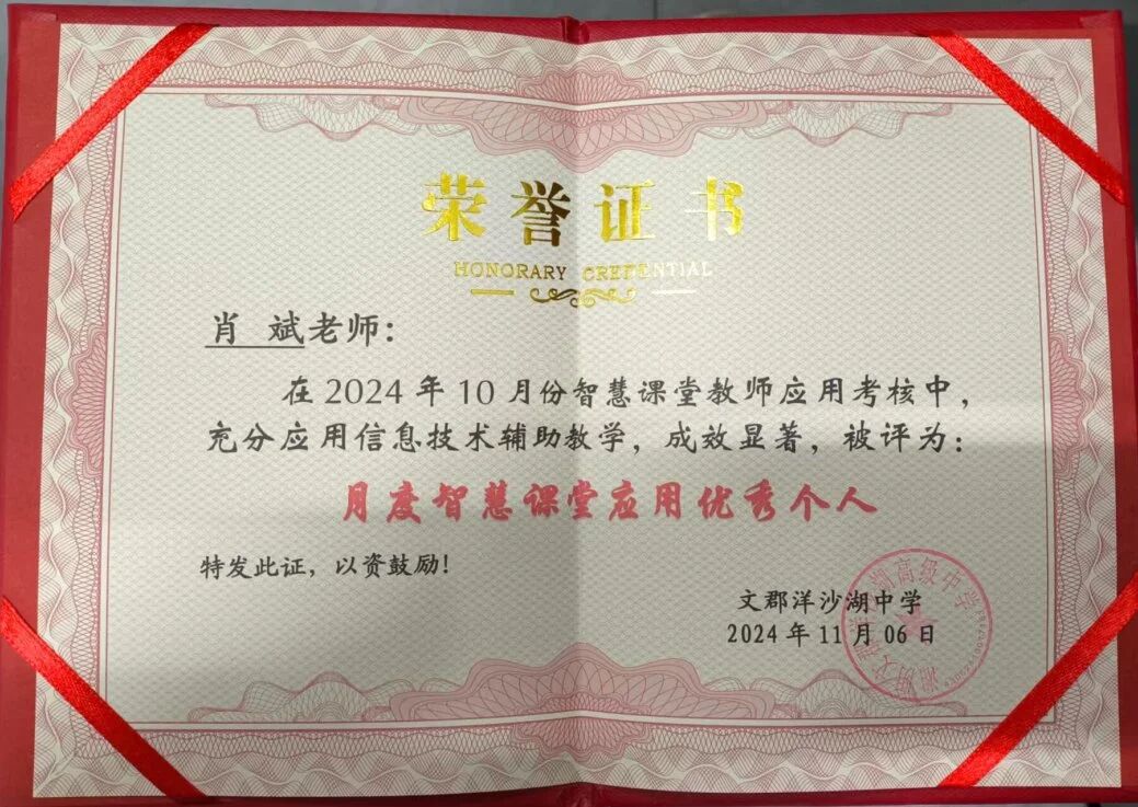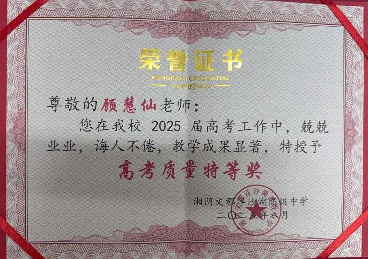 她不仅是一位中共党员、青年骨干教师,更是一位荣誉满载的教育实践者——“爱岗敬业”“优秀教师”“优秀班主任”等称号,是她数年如一日深耕教学的生动注脚。2025年,她在岳阳市“金鹗奖”教学竞赛湘阴赛区复赛中斩获“特等奖”,这不仅是对她教学能力的认可,更是对她教育理念的褒奖。