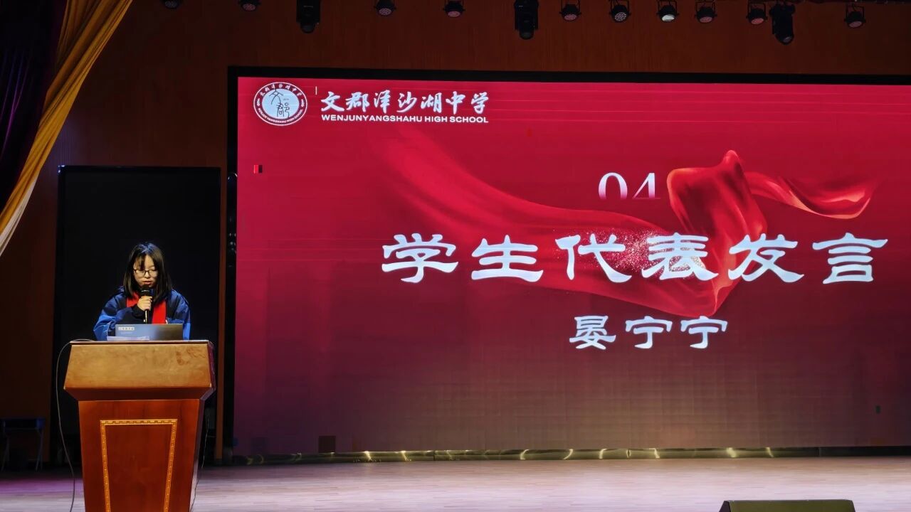 学生代表晏宁宁上台发言,道出全体学子的心声。她回顾寒窗岁月,展望高考征程,号召同学们以笔为剑、以梦为马,珍惜百日、全力以赴,用拼搏兑现承诺,用成绩致敬奋斗。