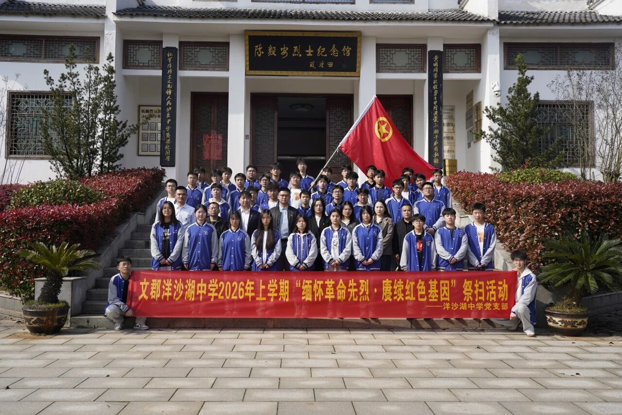 清明寄哀思,松柏祭英魂。为缅怀革命先烈丰功伟绩,传承红色基因,厚植师生家国情怀,4月1日,文郡洋沙湖中学组织党员教师、团员学生代表前往陈毅安烈士纪念馆,开展“缅怀革命先烈·赓续红色基因”清明祭英烈主题教育活动,以庄严仪式致敬英雄,以实地研学感悟初心,让红色精神在校园赓续传承。