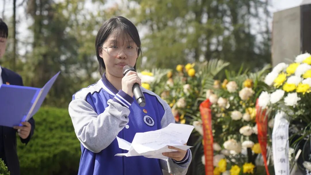 优秀团员代表2501班熊玉婷同学发言:我们怀着崇敬之情缅怀革命先烈,铭记他们为国为民抛头颅、洒热血,为理想信念不屈奋斗的历史。先烈精神永垂不朽,我们必将继承遗志,牢记誓言,努力成长为栋梁之才,续写强国征程。