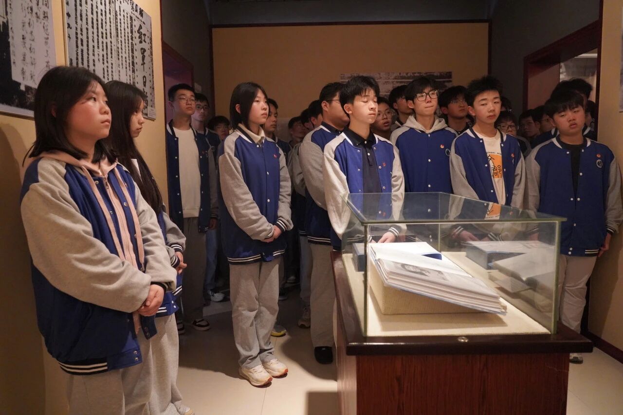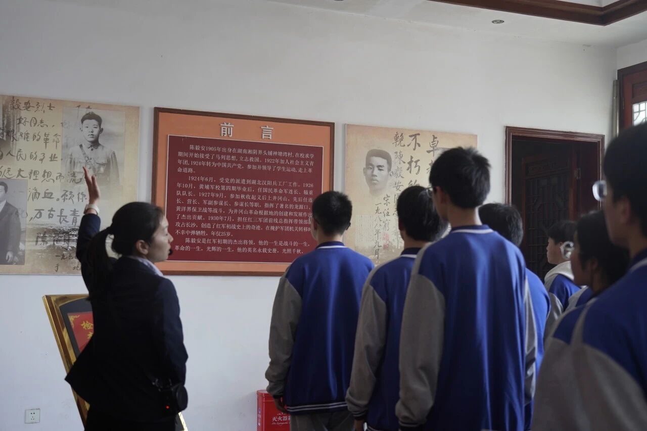 仪式结束后,全体师生有序走进陈毅安烈士纪念馆。馆内的历史照片、文物与文献,生动再现了烈士短暂而光辉的一生。同学们凝神驻足、屏息聆听,认真研读每一段史料、细看每一件遗物,在沉浸式学习中深刻感悟先辈的坚定信仰与家国担当,真切懂得今日幸福生活来之不易,立志守护红色江山,传承英雄精神。